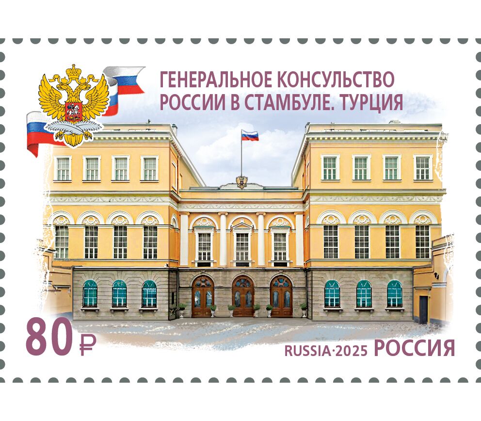 3 почтовые марки «Здания дипломатических представительств России за рубежом» 2025
