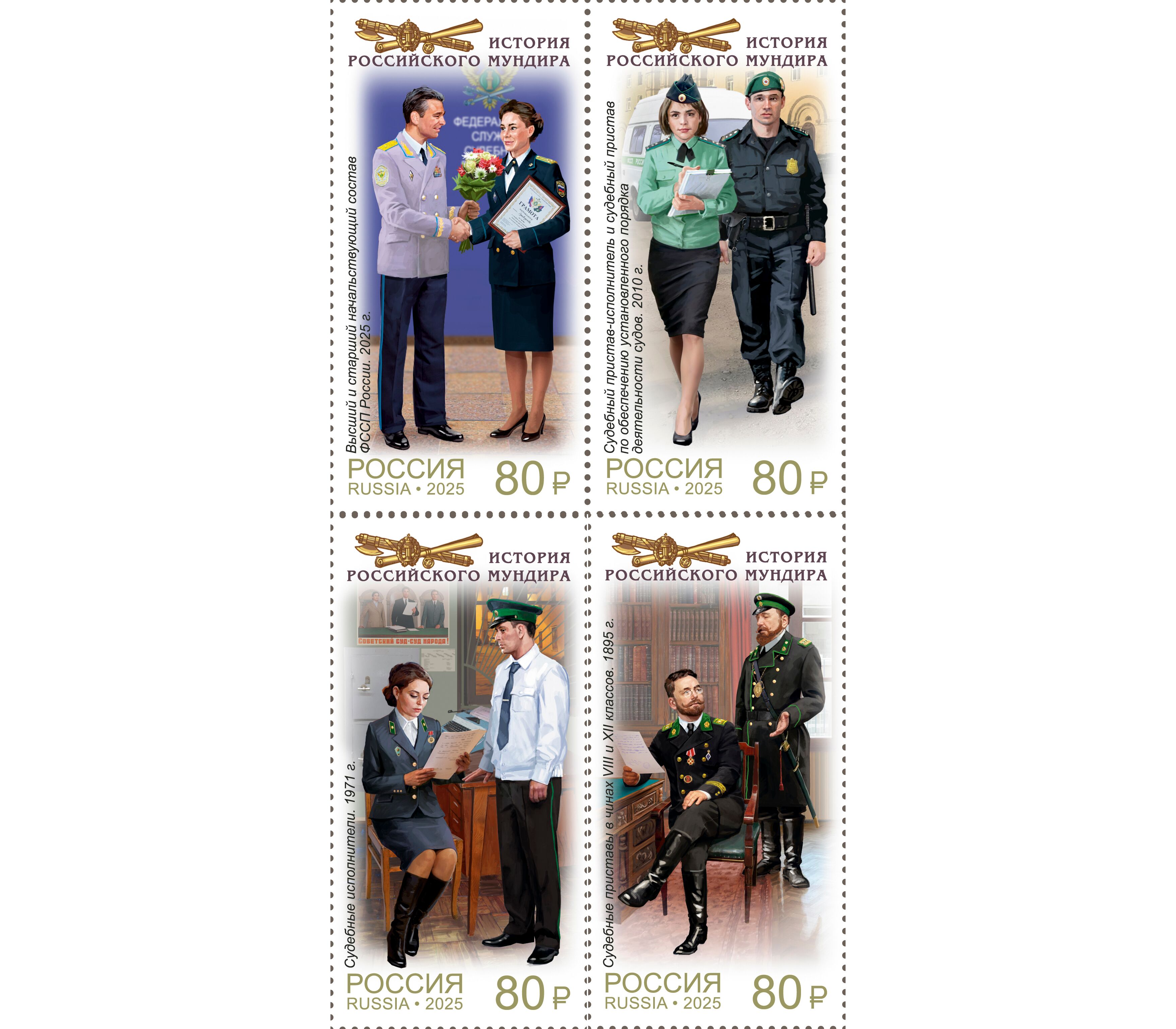 5 почтовых марок «История российского мундира. Мундиры службы судебных приставов» 2025