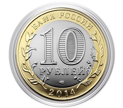 За основу взята оригинальная монета. Изображение нанесено методом лазерной гравировки. Монета с объемной заливкой поверх эмали. Сувенирная продукция, поставляется в открытке и капсуле.