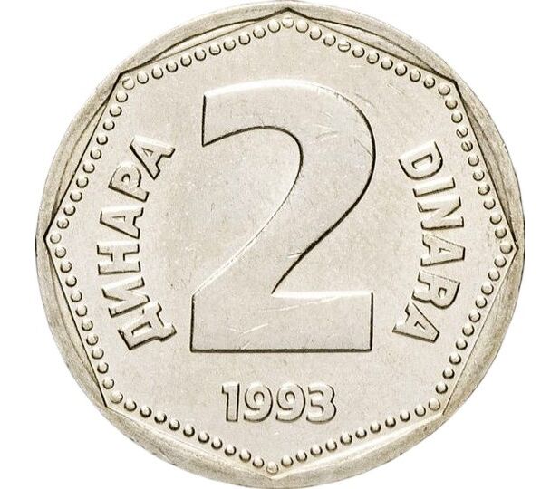 Югославская ходовая монета номиналом 2 динара, выпущенная в 1993 году. Данный товар можно приобрести, оформив заказ в нашем интернет-магазине.