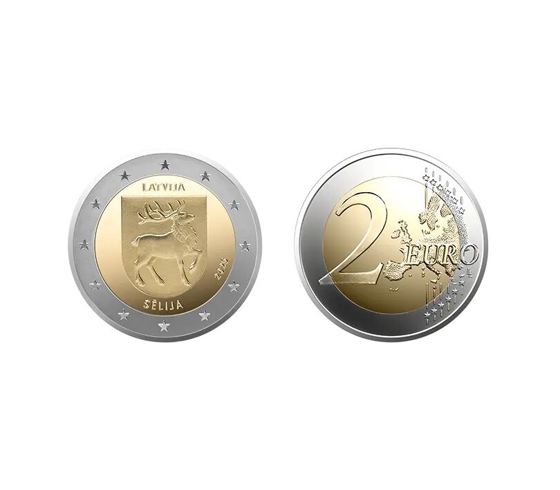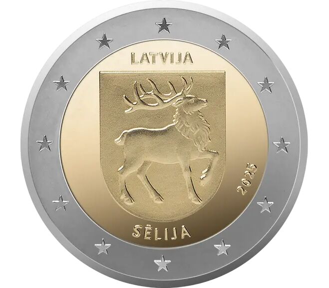 Банк Латвии в 2025 году выпустил монету достоинством 2 евро, которая завершила серию памятных монет, посвященную историческим землям Латвии. На национальной стороне монеты изображён герб Селии — серебряный олень.