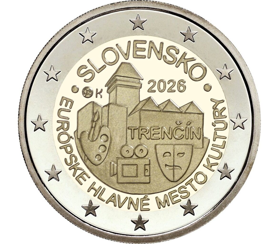 Монета 2 евро 2026 «Тренчин — Культурная столица Европы» Словакия