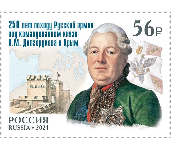 Почтовая марка «250 лет походу Русской армии под командованием князя В.М. Долгорукова в Крым» 2021
