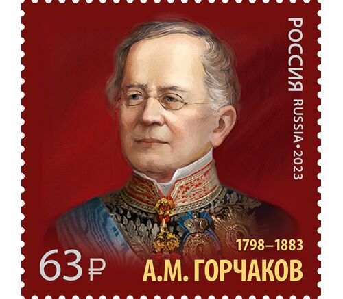 Почтовая марка «История российской дипломатии. 225 лет со дня рождения А.М. Горчакова, канцлера» 2023
