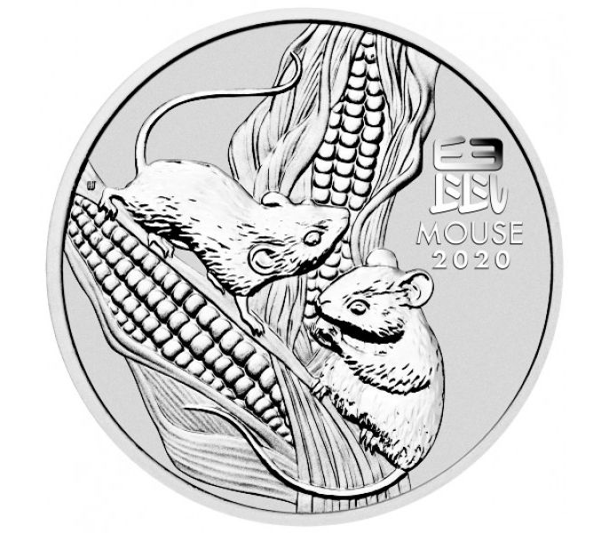 Монета 50 центов 2020 «Восточный гороскоп — Год мыши (крысы)» Австралия (серебро 1/2 унции)